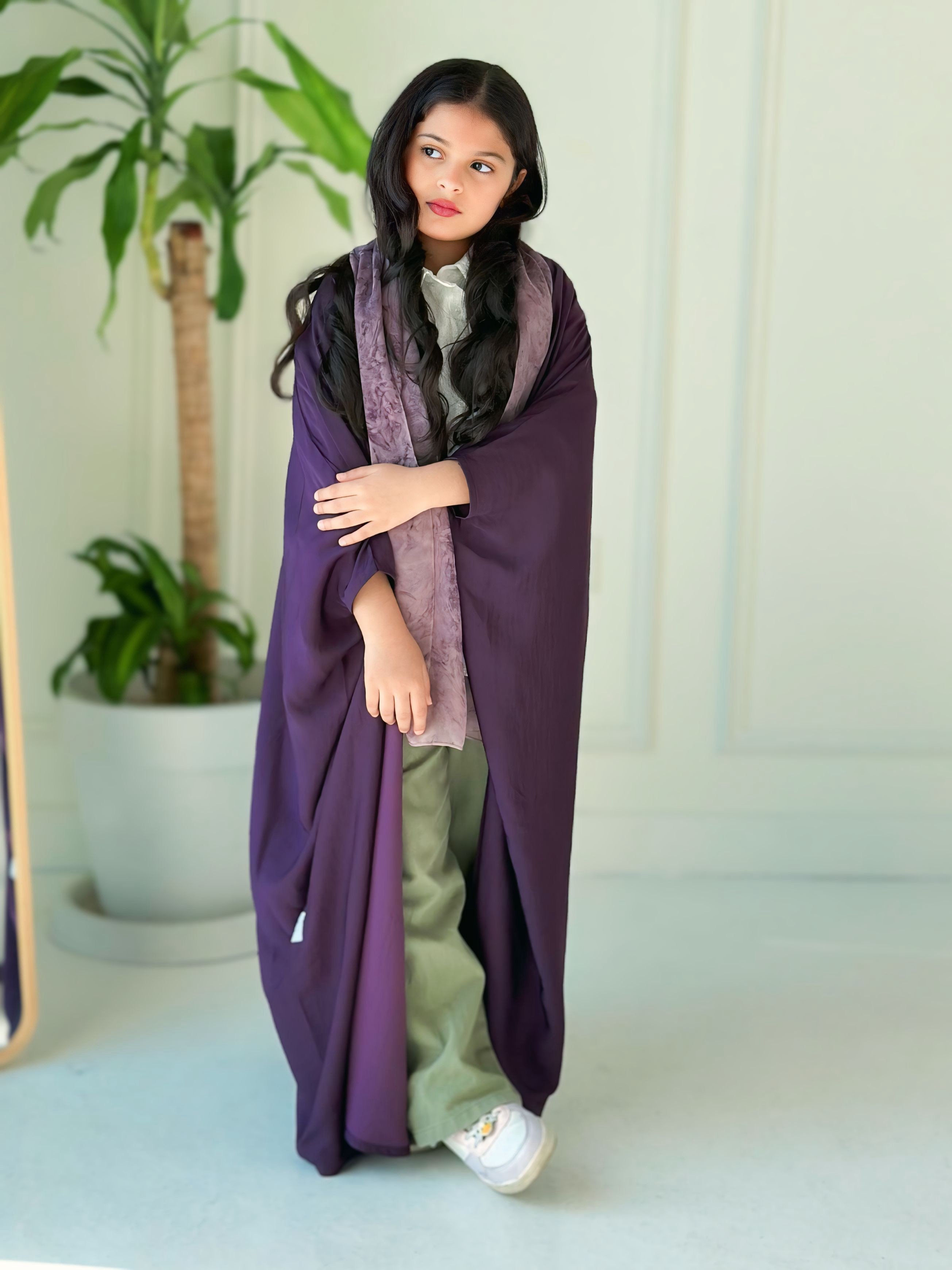 عباية تالين بناتي قصة نصف بشت قماش حرير مغسول مع طرحة مشجرة
