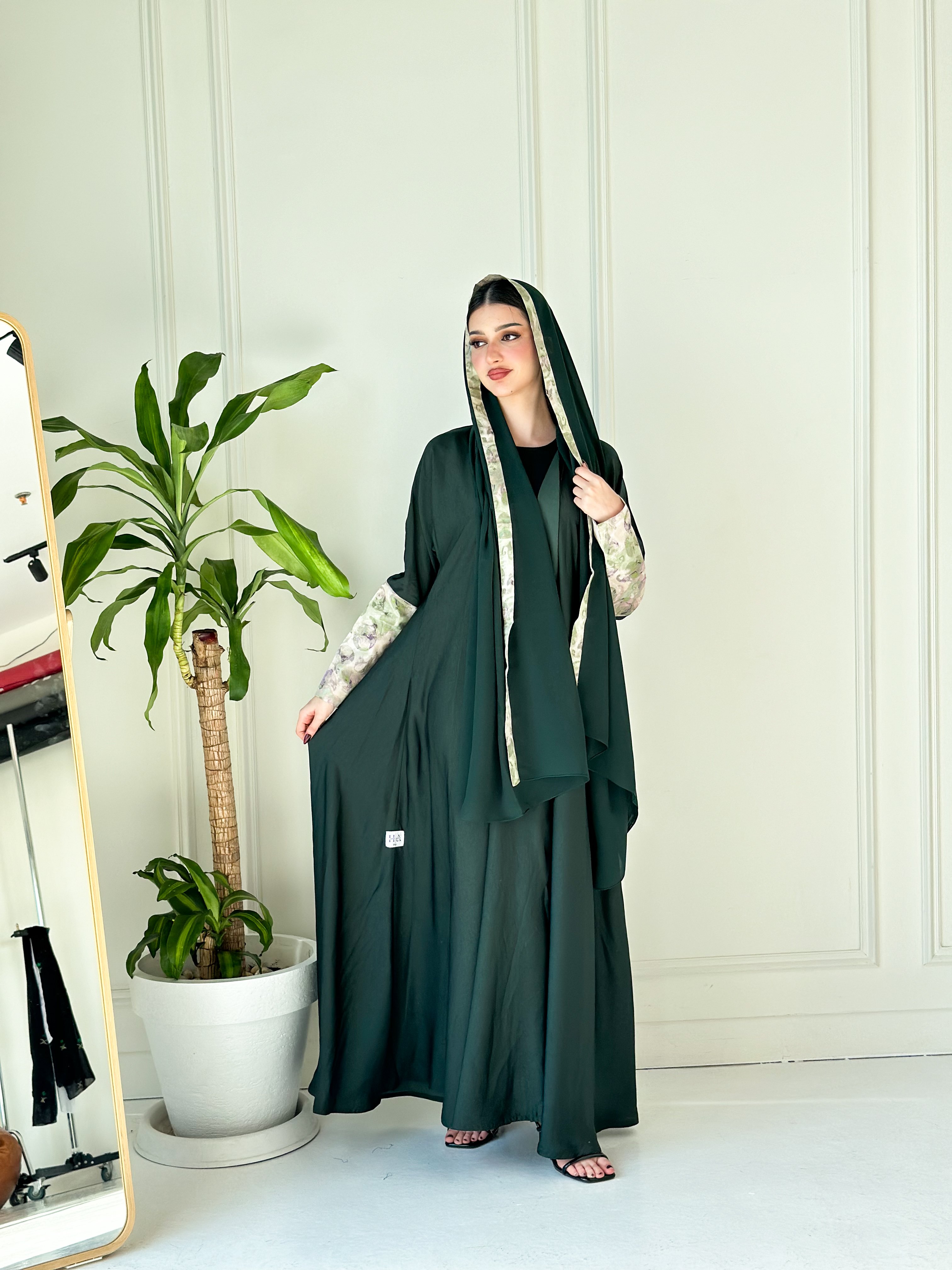 قصة ربع كلوش قماش حرير مغسول مع اضافة قماش مشجر